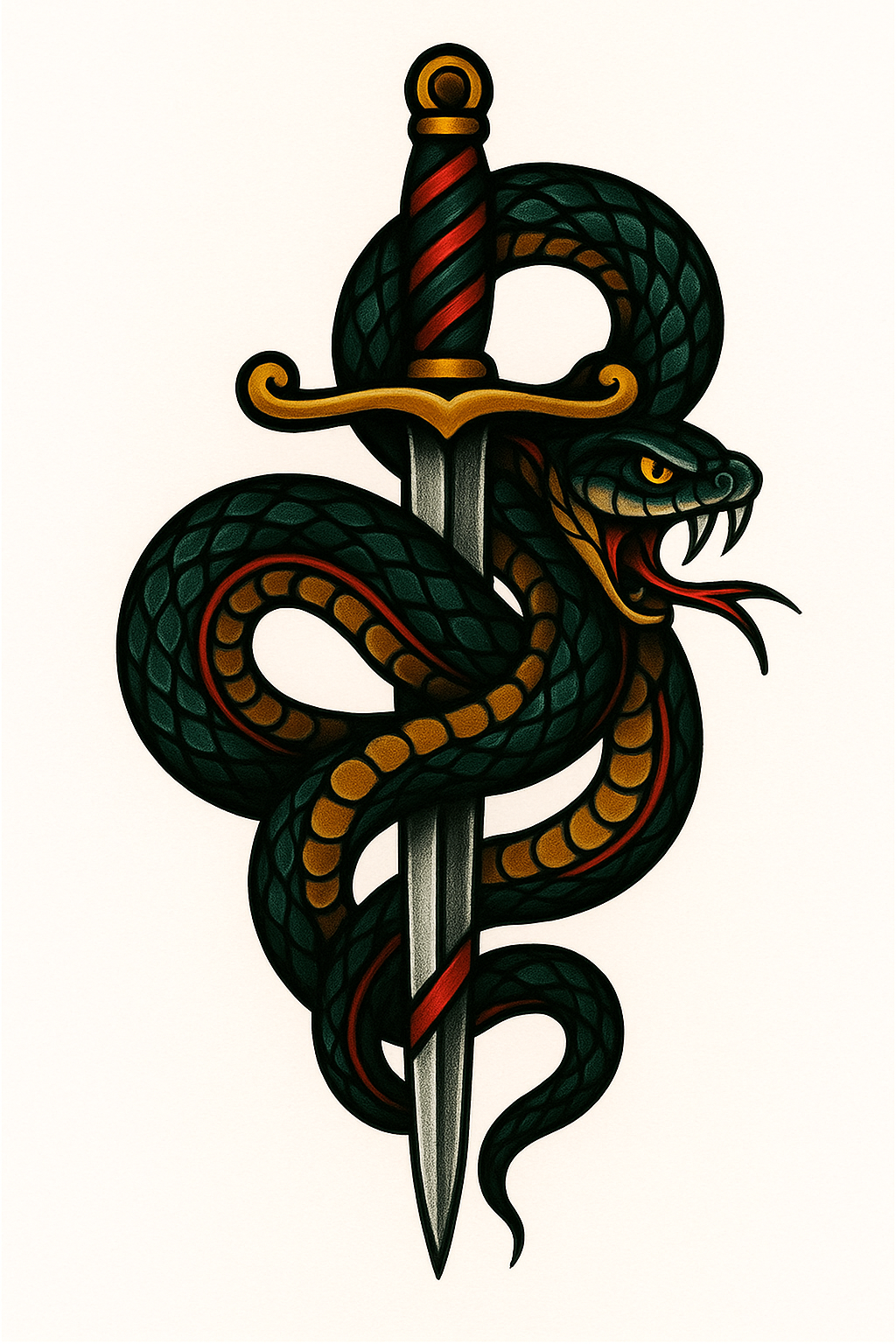 Stylized Snake and Dagger Illustration for Tattoo Art