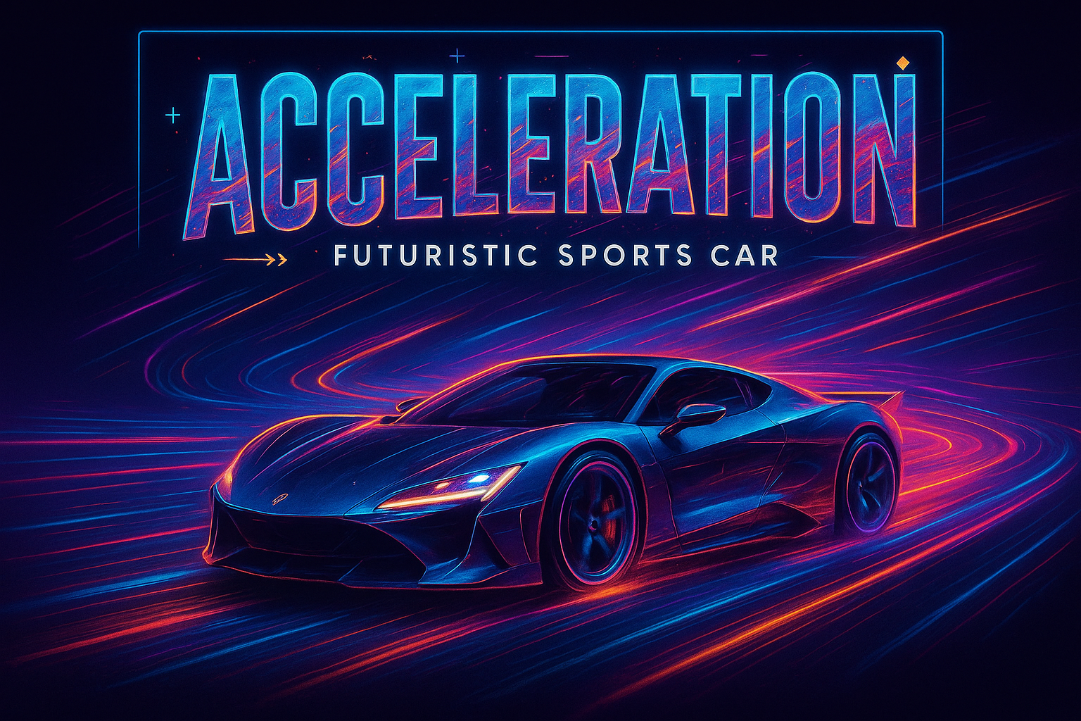 Vibrant digital artwork featuring a futuristic sports car with neon highlights and dynamic light trails, ideal for automotive marketing or tech-themed designs.