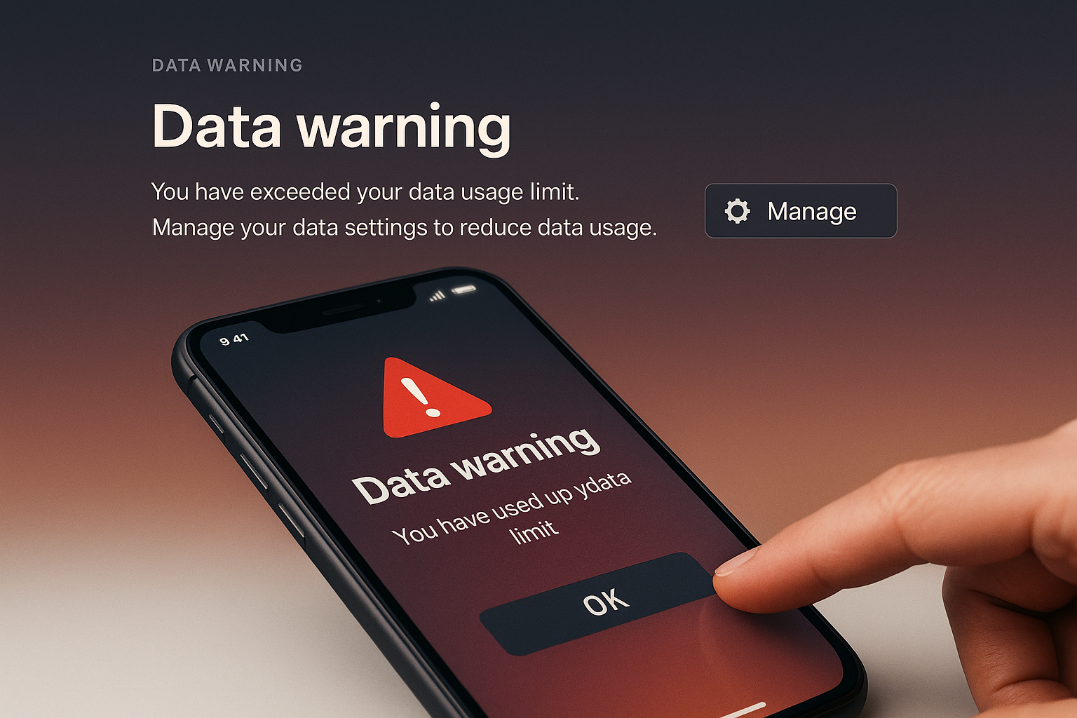 /Collection: /by davooda/Type: PNG/A stylish web page design featuring a mobile phone displaying a data warning. The background has a gradient from dark to light, enhancing the readability of the text.