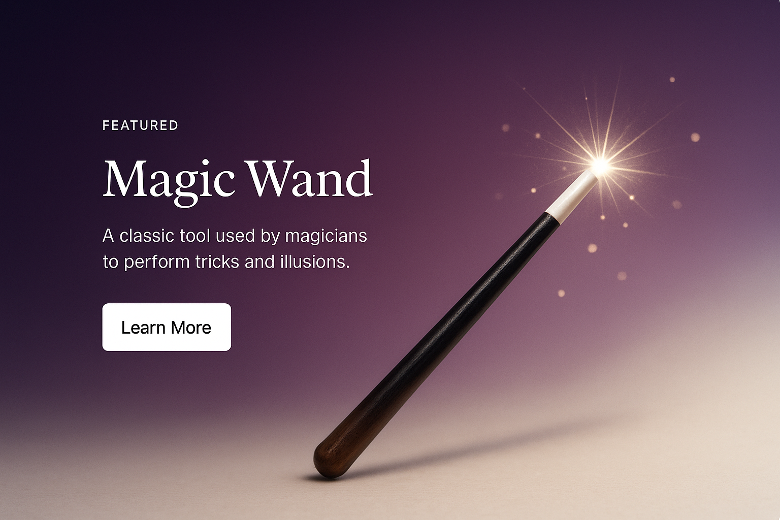A beautifully designed magic wand icon with a radiant tip, set against a gradient background. Ideal for web pages with text blocks and action buttons.
