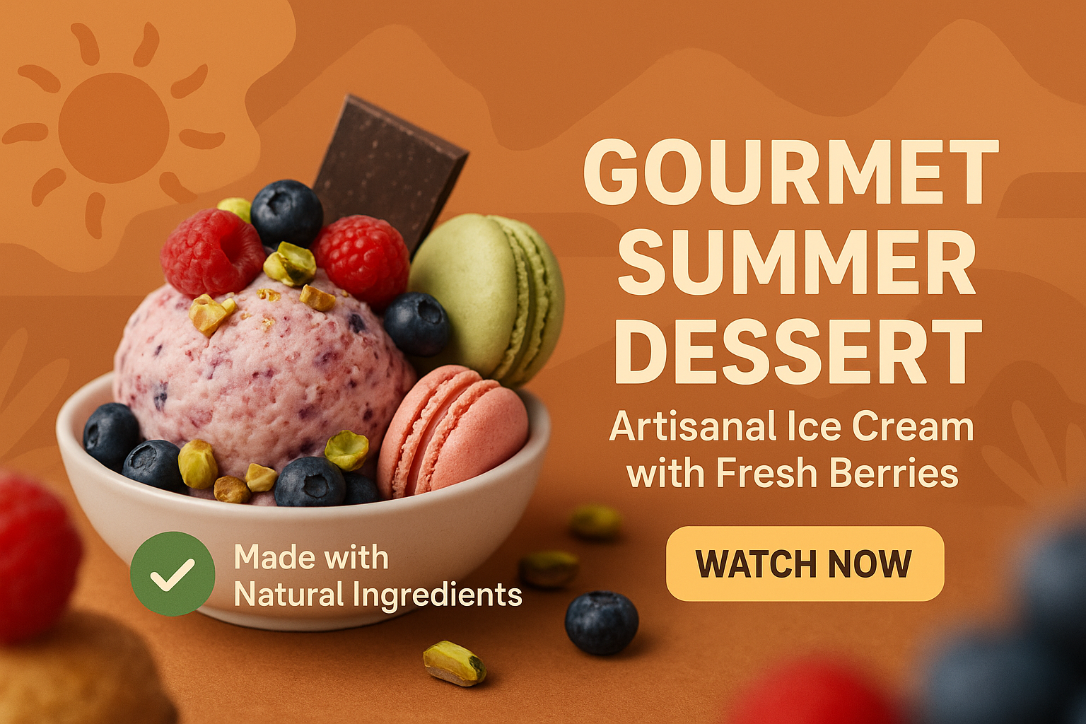Gourmet Summer Dessert Promotion Featuring Ice Cream and Berries