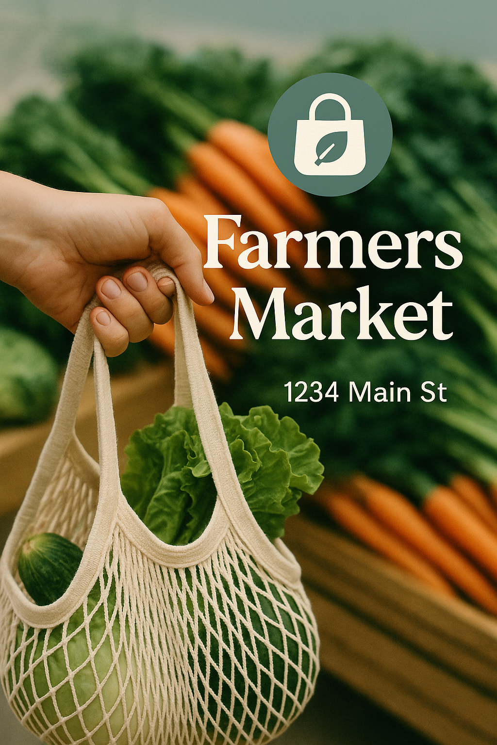 Farmers Market Promotional Graphic Featuring Fresh Produce