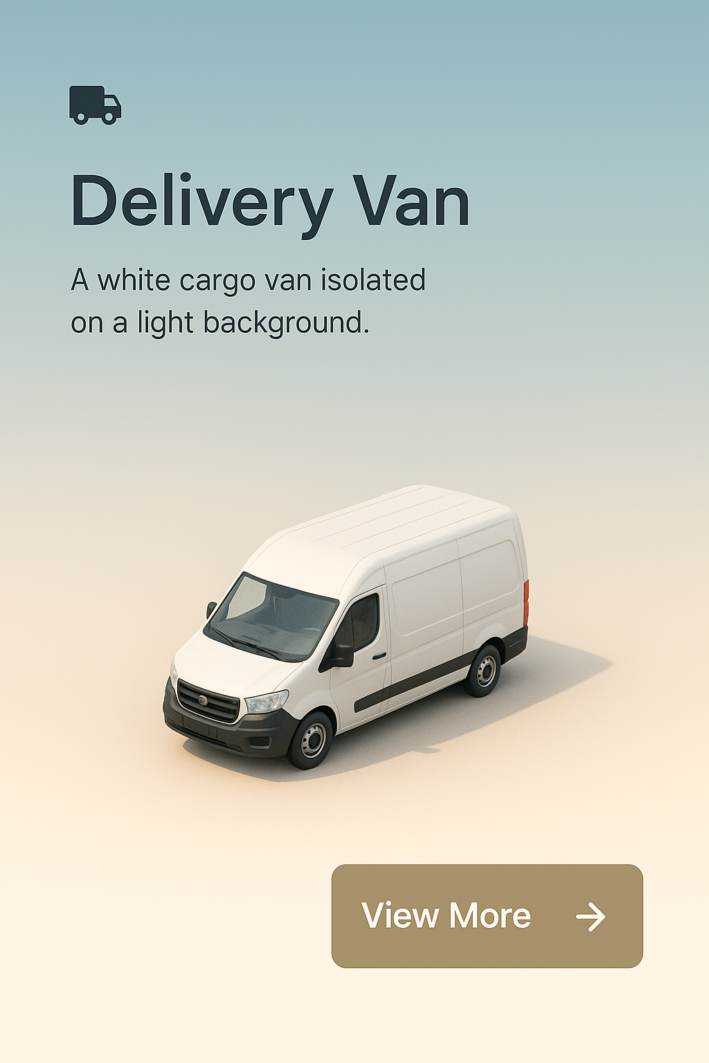 A realistic 3D depiction of a white delivery van isolated against a softly gradient background, creating a sense of distance and scale in the scene.