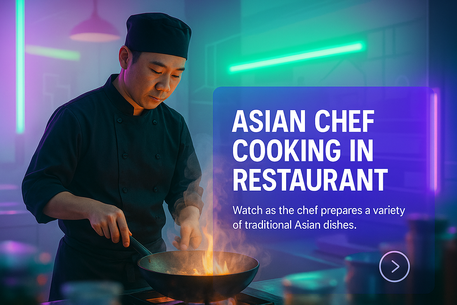 Dynamic Restaurant Cooking Scene Featuring Asian Chef