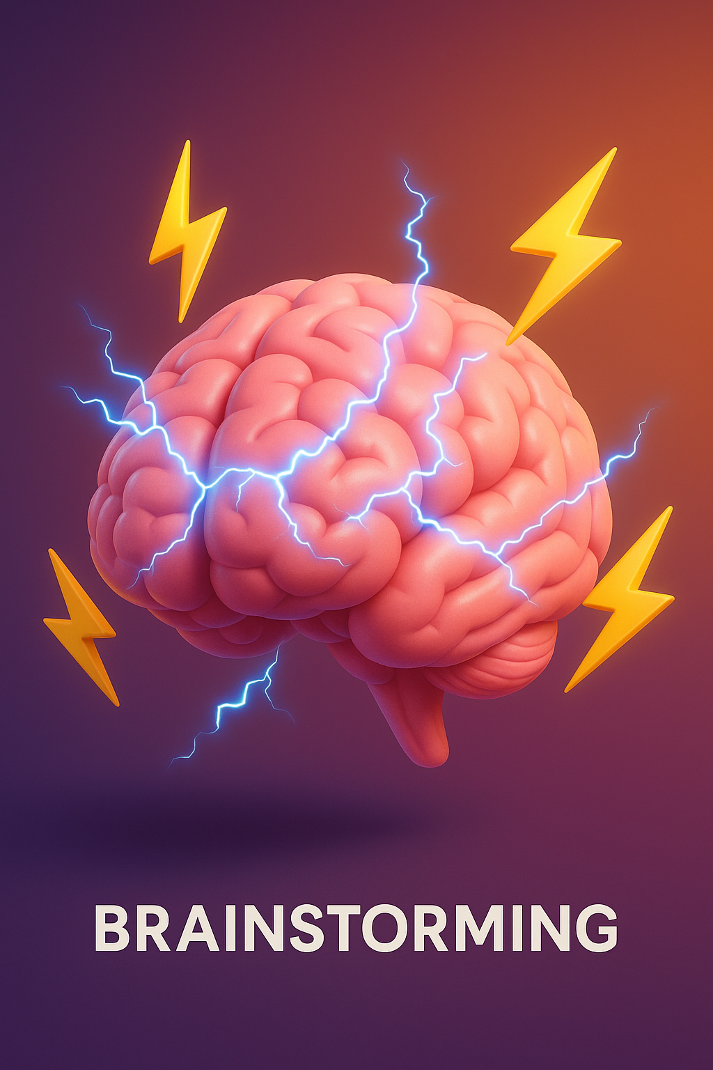 Energetic 3D Cartoon Brainstorming Concept with Lightning