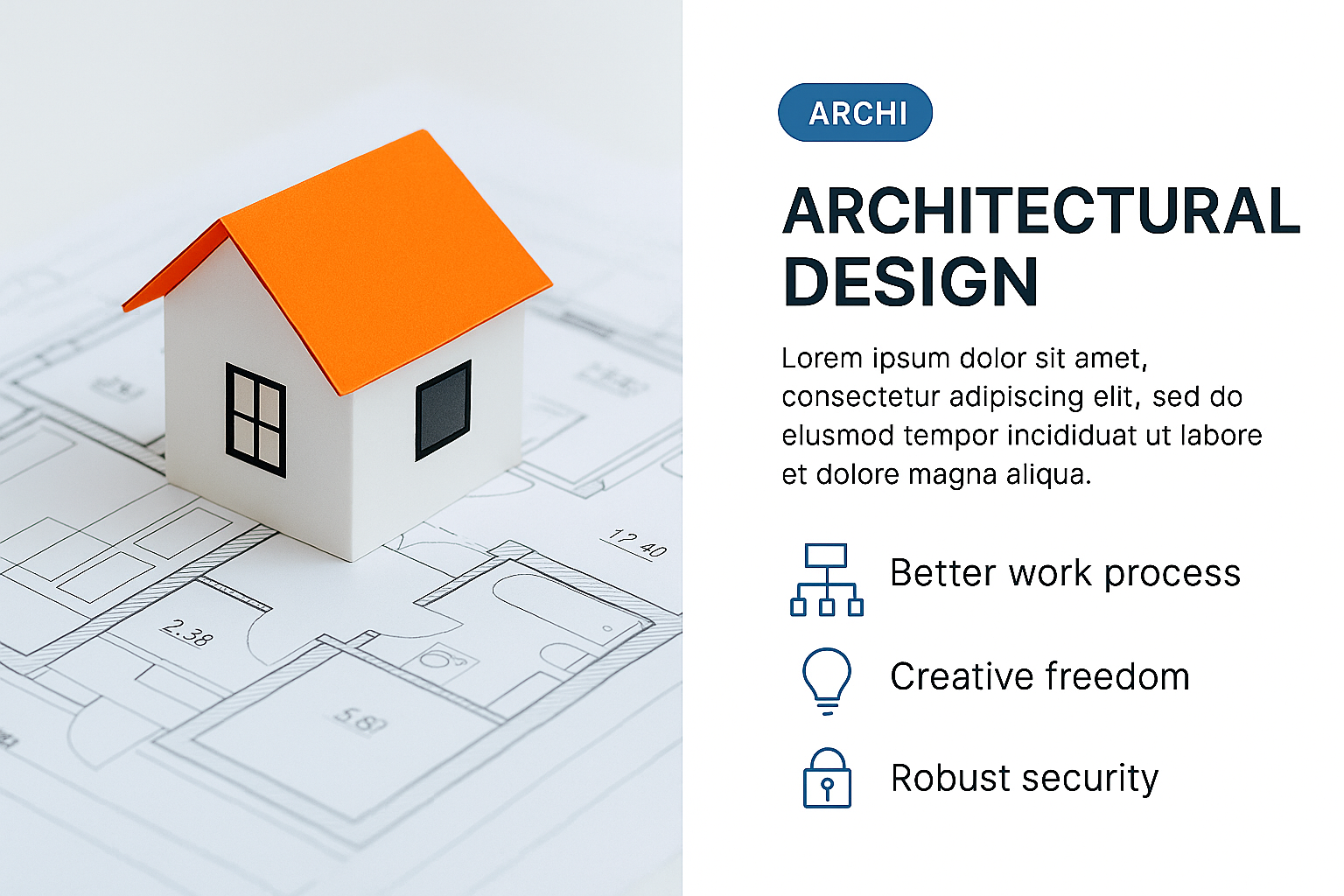 Visual representation of architectural design featuring a model house on a blueprint, ideal for promoting design services or educational content.