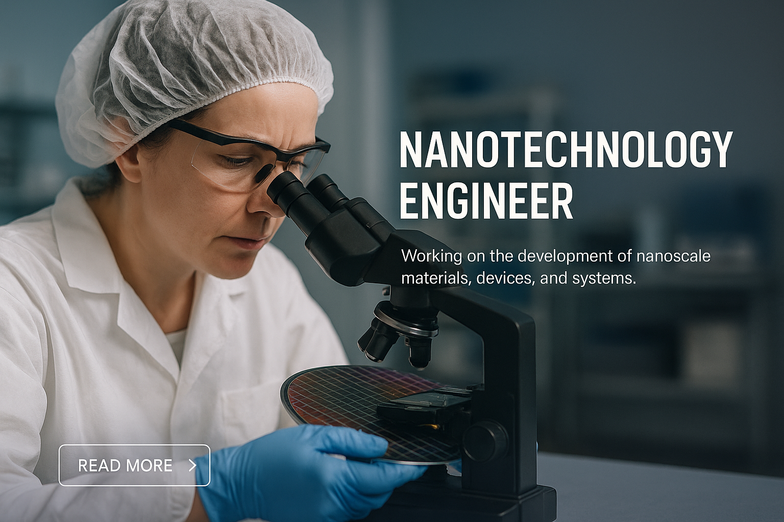 /Collection: /by davooda/Type: PNG/A focused nanotechnology engineer examines materials under a microscope in a lab, highlighting precision in developing nanoscale technologies. The clean and modern workspace enhances the scientific atmosphere.
