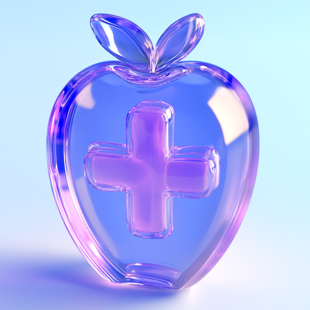 3D rendered apple icon featuring a medical cross, blending health and wellness themes. Ideal for healthcare branding or health-related applications with a modern aesthetic.