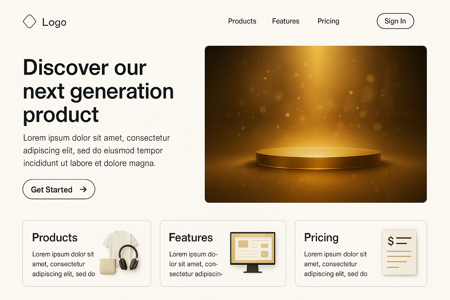 Stylish Landing Page Design with Elegant Gold Backdrop