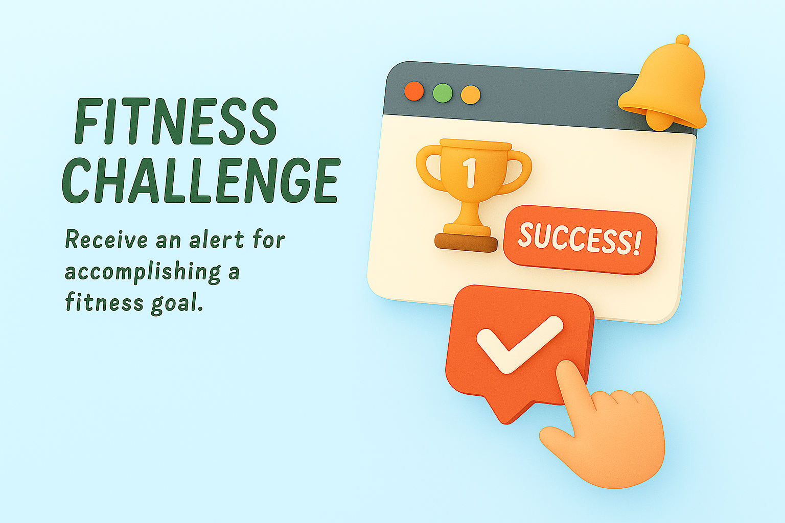 Colorful 3D graphic representing a fitness challenge success notification, ideal for health and wellness apps or promotional materials.