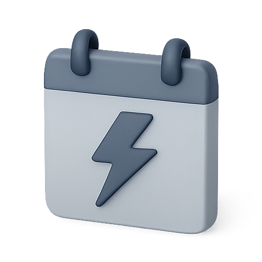 A modern, stylized calendar icon featuring a lightning bolt, symbolizing energy or urgency. Ideal for app interfaces and digital projects.