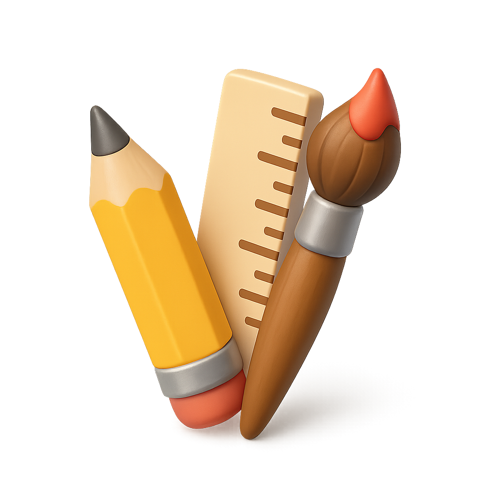 Colorful 3D Art Supplies Icon with Paintbrush, Pencil, and Ruler
