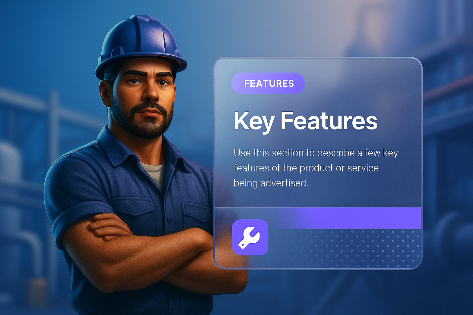 /Collection: /by davooda/Type: PNG/A candid portrayal of a confident Hispanic male factory worker with arms crossed, set against a smooth gradient background. He wears a hard hat and blue uniform, embodying strength in the industrial environment.
