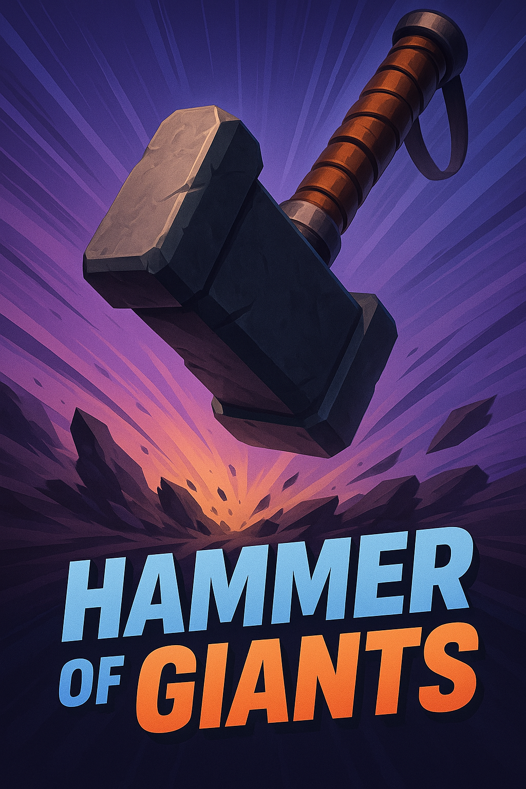 /Collection: /by davooda/Type: PNG/A dynamic 3D illustration of a giant hammer with a vibrant gradient background. The title 'HAMMER of GIANTS' is prominently displayed in bold, colorful text, creating an engaging visual impact.