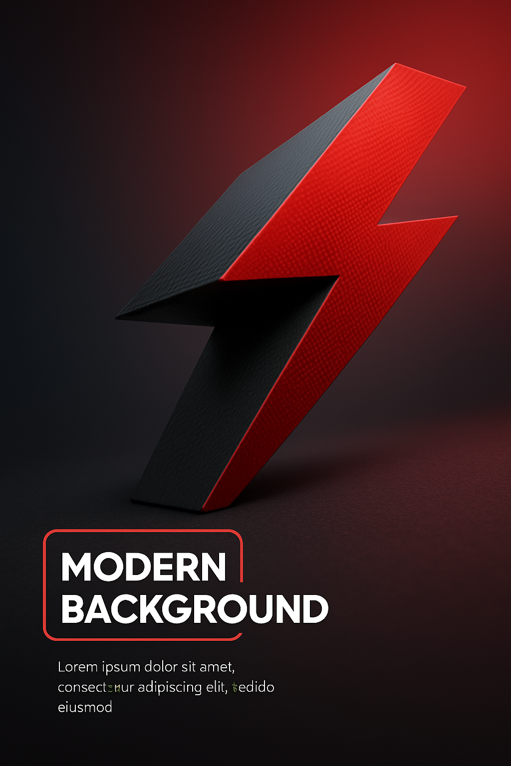 This image features a stylized 3D lightning bolt in red and black against a dark background, suitable for modern digital designs and branding.