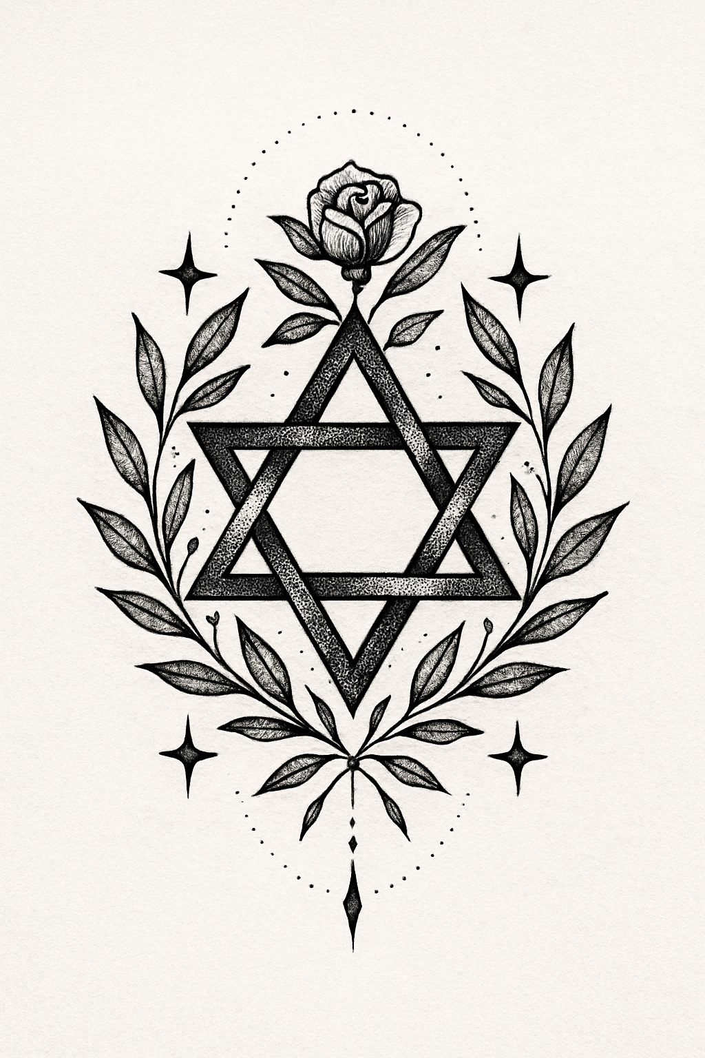 Tattoo Design Featuring Star of David and Floral Elements