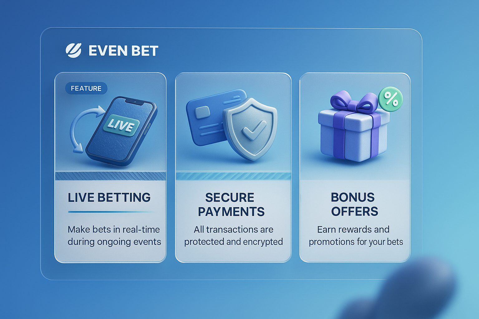 A sleek 3D illustration showcasing betting features, including live betting, secure payments, and bonus offers. Each feature is visually represented with modern icons and a cohesive design.
