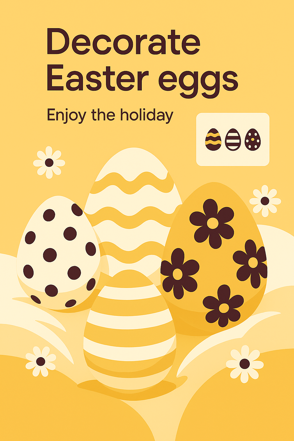 Colorful Easter-themed graphic featuring decorative eggs with various patterns, ideal for holiday promotions or social media posts celebrating Easter.