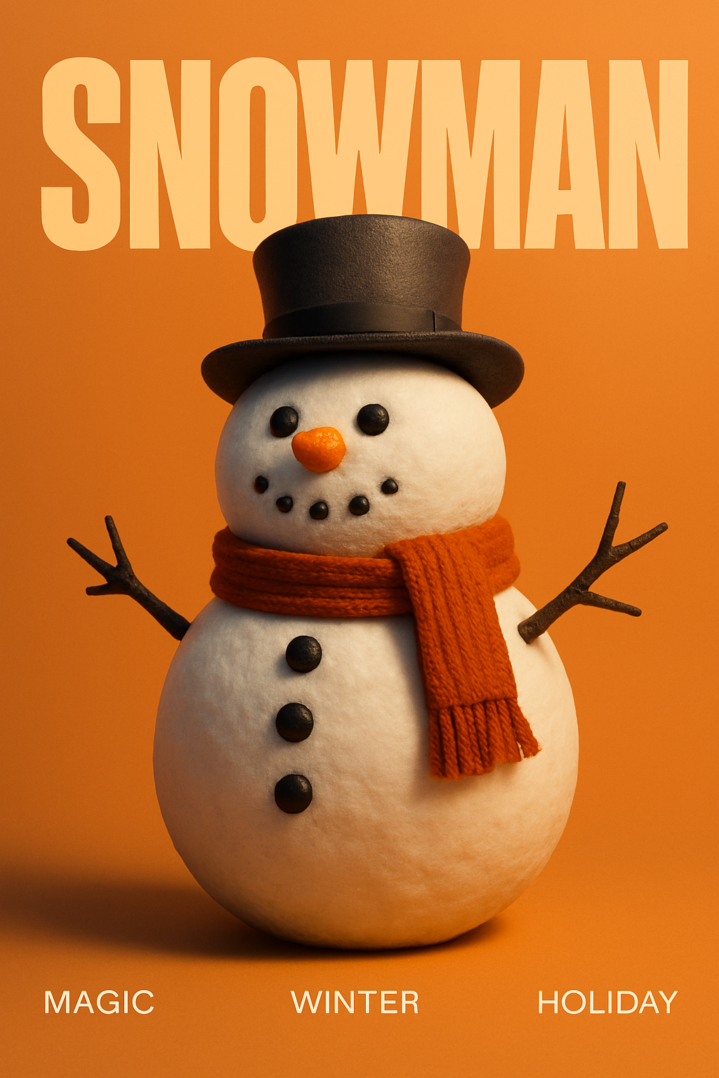 A striking 3D snowman with a top hat and scarf is prominently featured against a warm gradient background. The bold 'SNOWMAN' headline dominates the upper half, embodying a modern cinematic aesthetic.