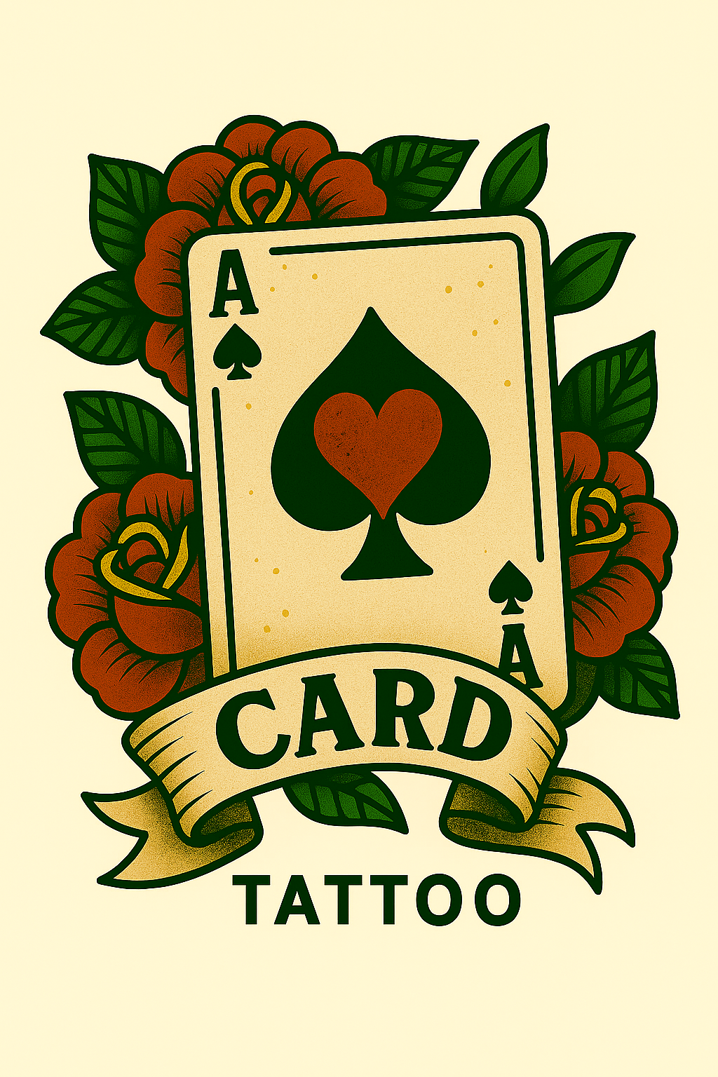 Vintage Tattoo Style Artwork Featuring Playing Cards and Roses