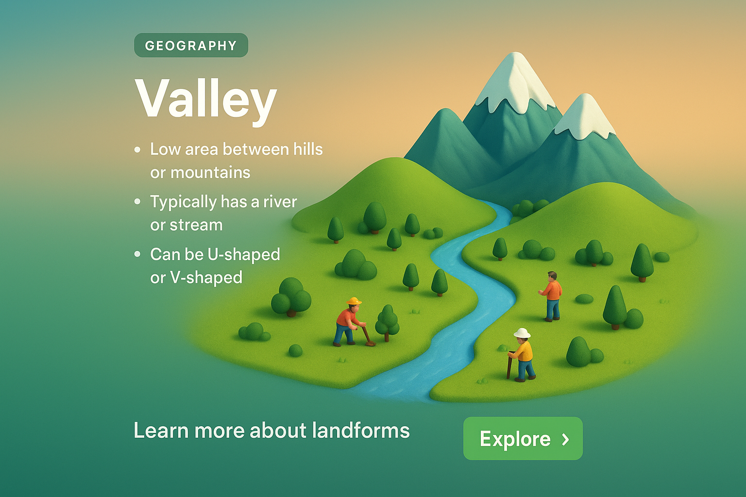 3D Illustration of a Serene Valley Landscape with Feature Block