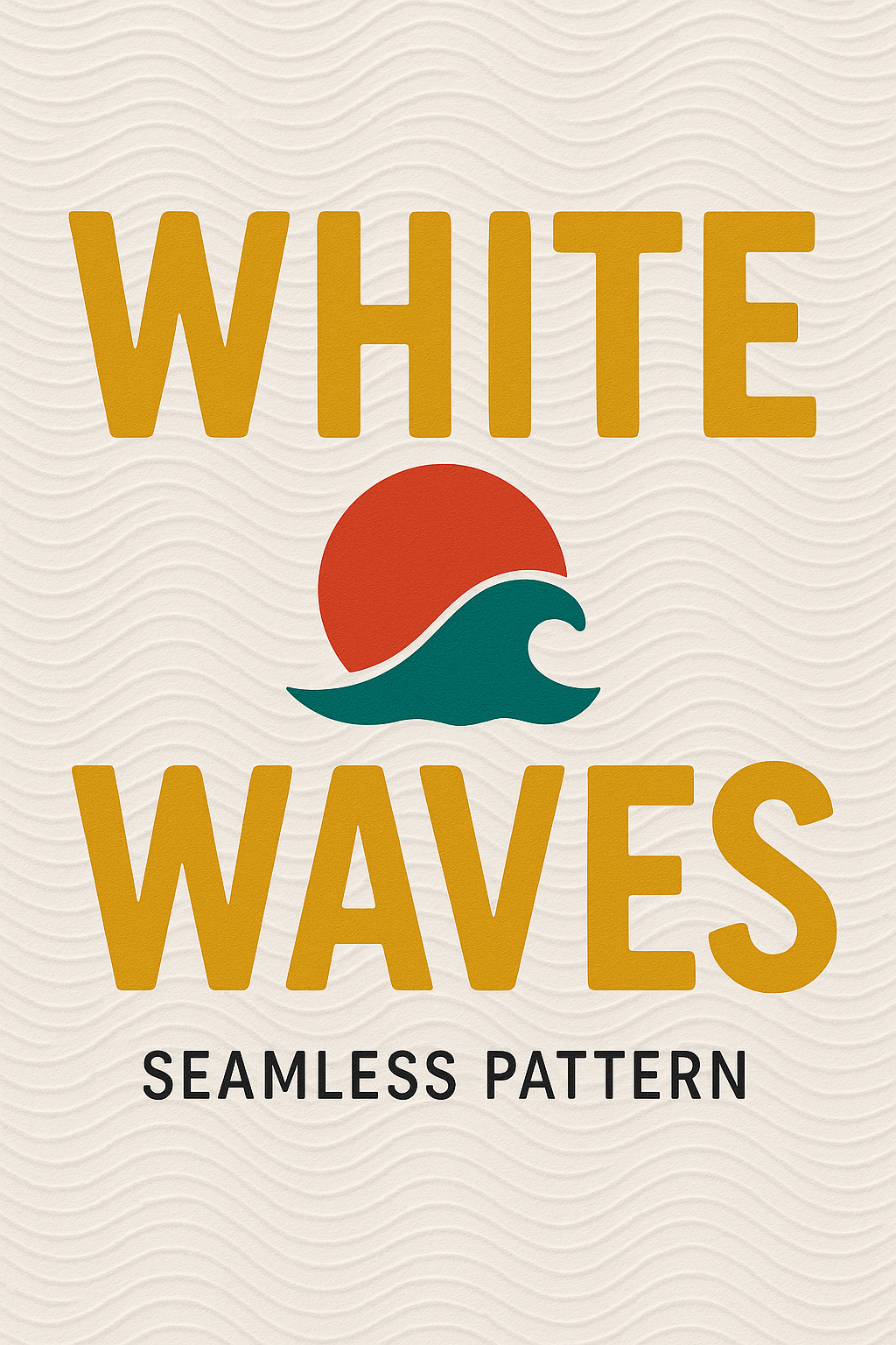 Stylish seamless pattern design featuring bold typography with a wave and sunset motif. Ideal for use in textiles, wallpapers, or branding.