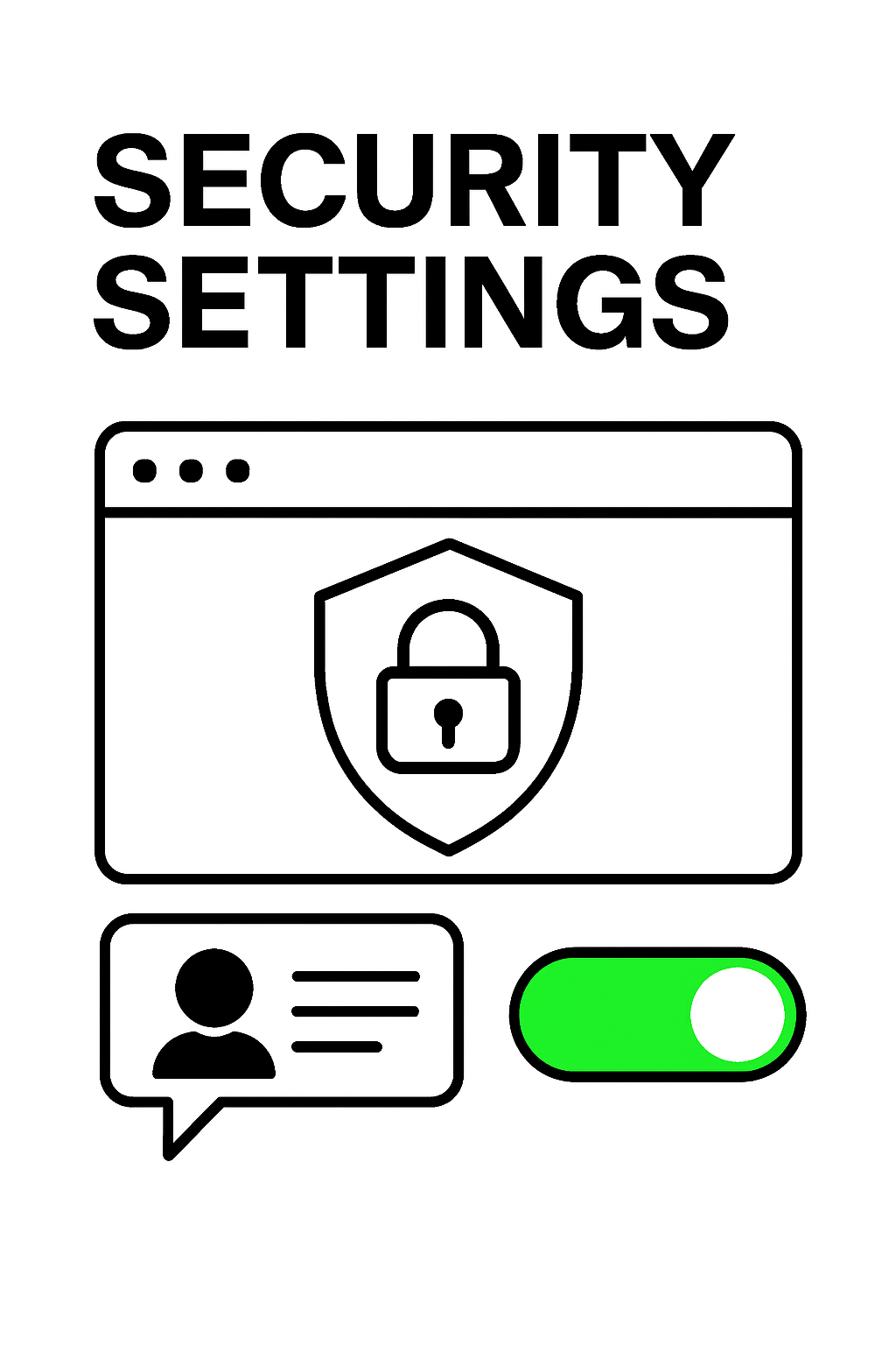/Collection: /by Sergey Leonov/Type: PNG/Simple line art illustration depicting a computer screen with a padlock symbol, representing security settings. Ideal for tech-related content or user interface design.