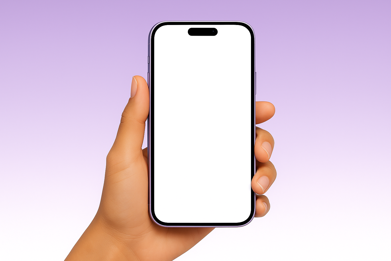 Stylish Purple Phone in Hand with Gradient Background