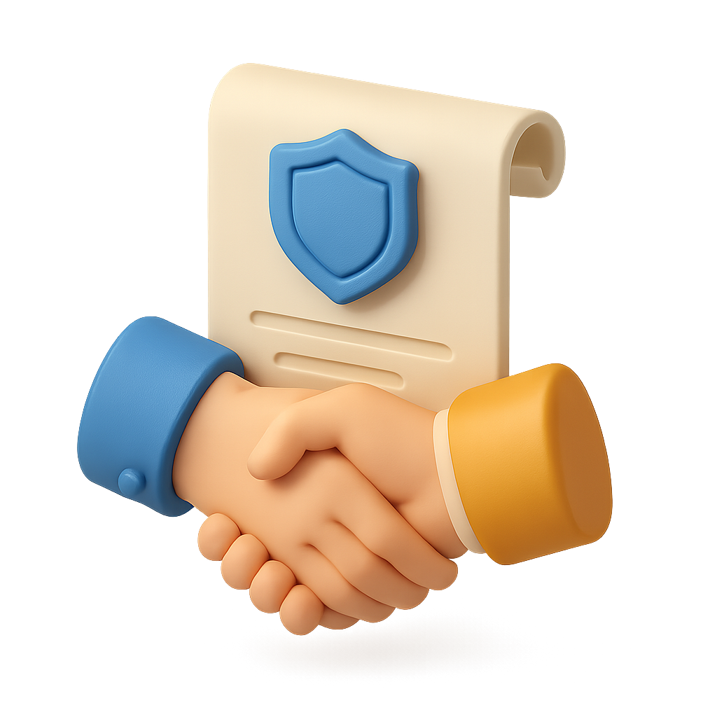 3D Alliance Handshake Icon with Treaty Document