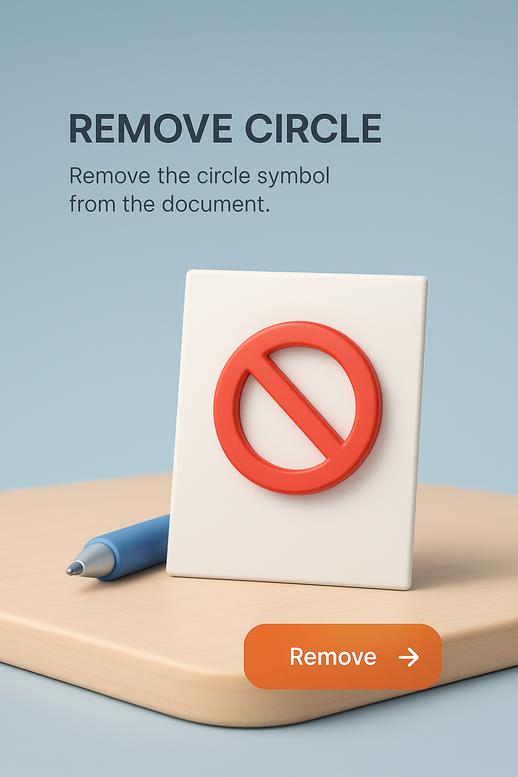 /Collection: /by davooda/Type: PNG/A realistic 3D illustration featuring a 'remove circle' symbol on a document with a pen and action button. The design is zoomed out, emphasizing a cohesive layout.