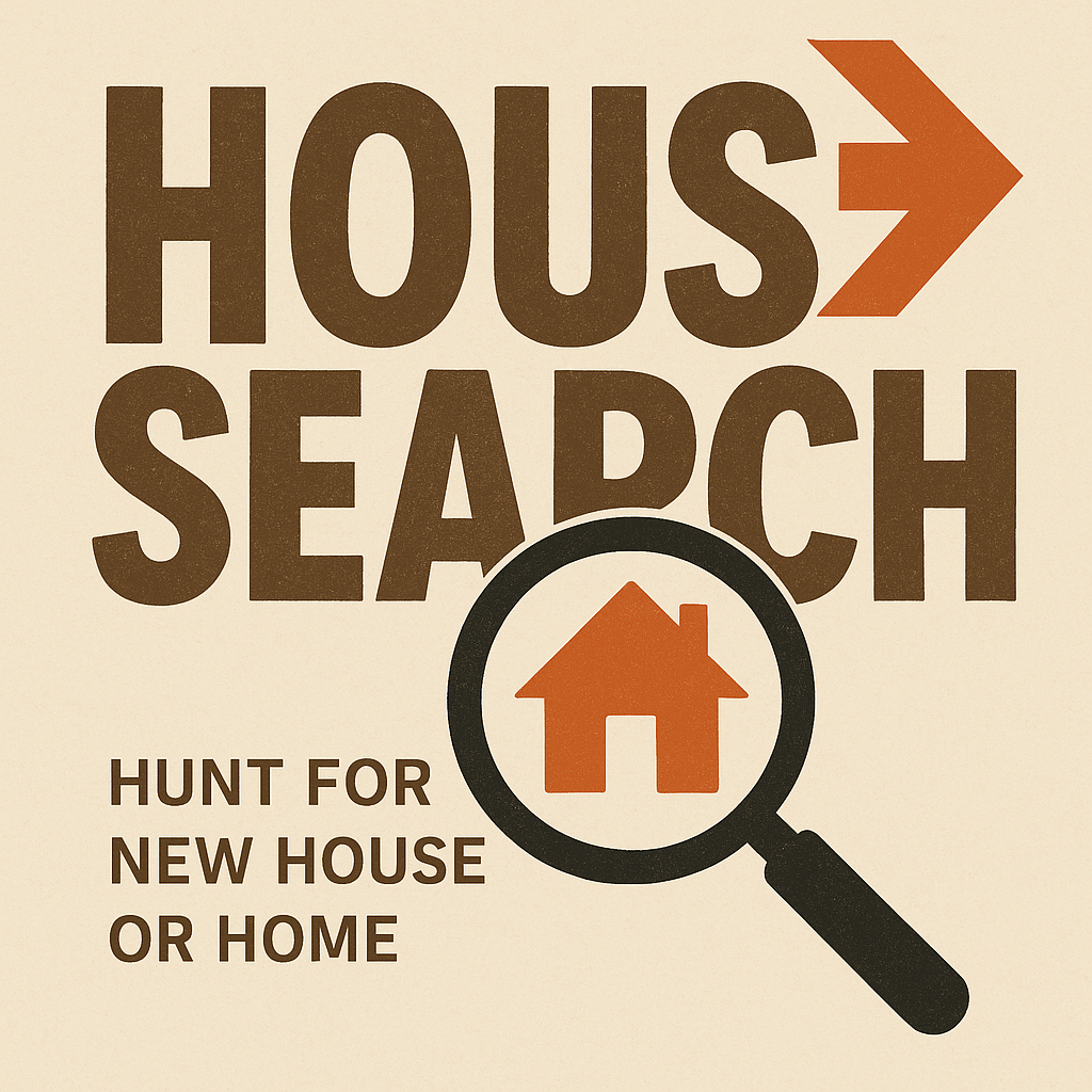 Real Estate Search Graphic with Magnifying Glass and House Icon