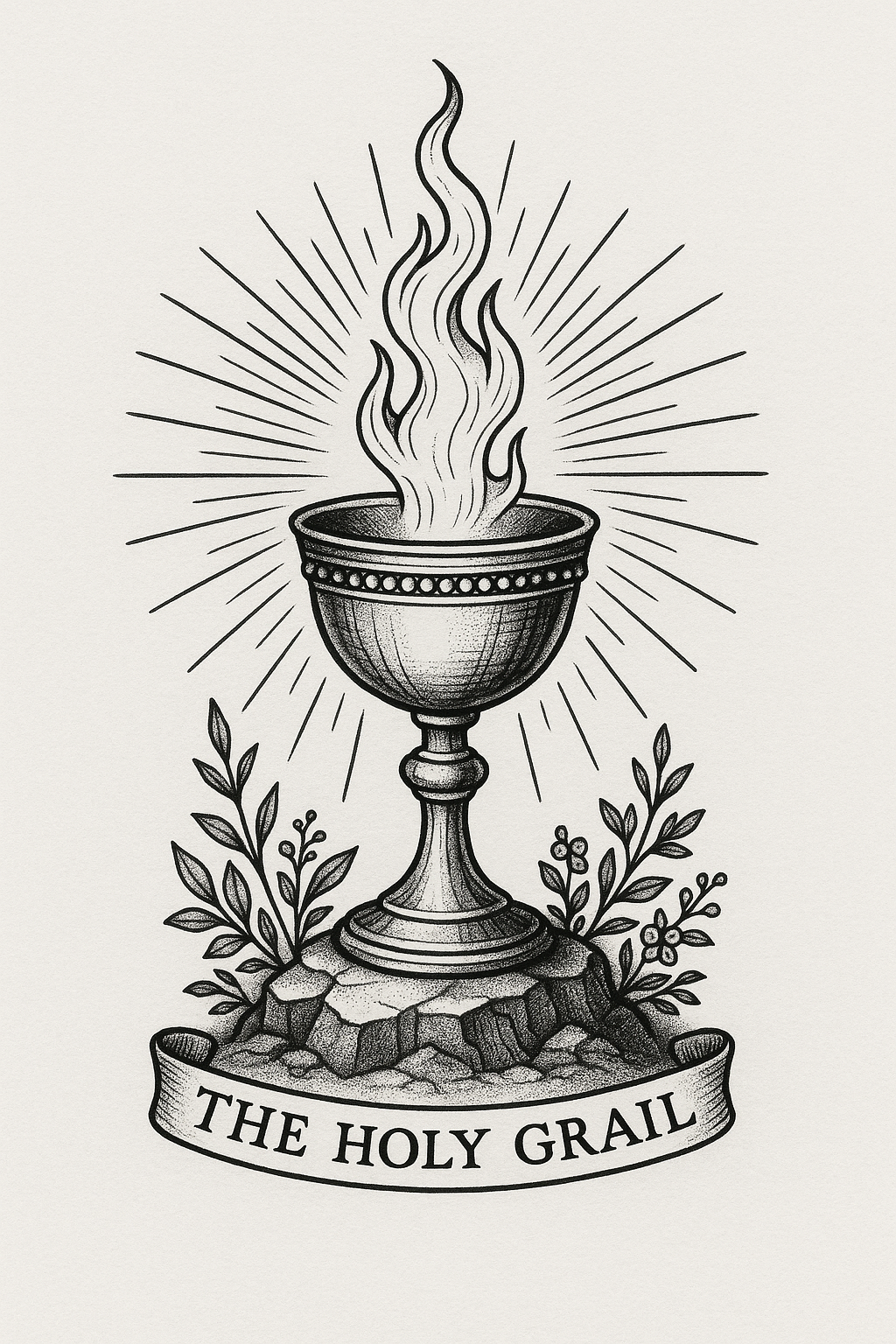 Illustrative depiction of the Holy Grail with flame and floral elements