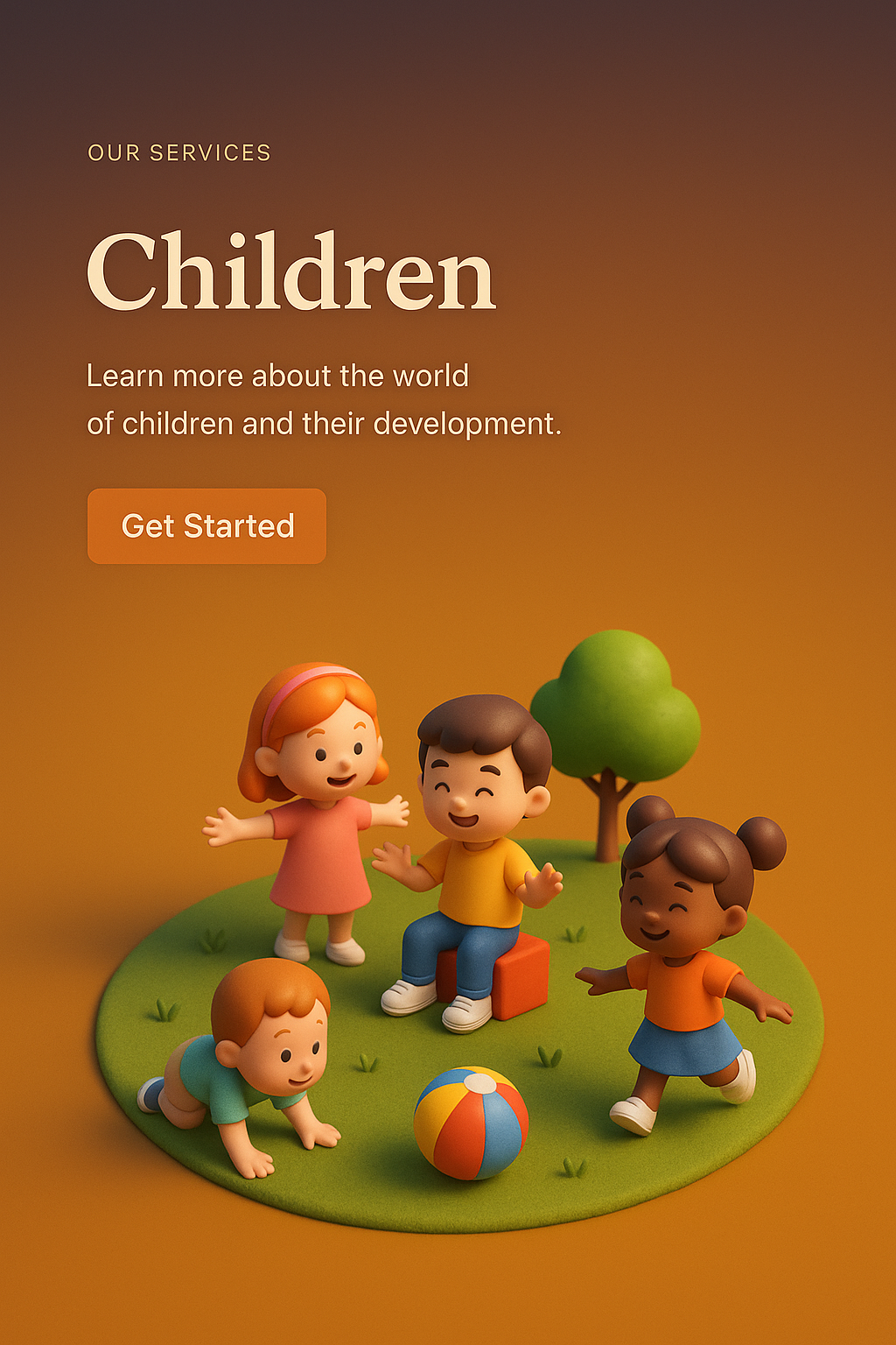 A vibrant 3D illustration showing children playing together in a joyful scene. The background features a smooth gradient, enhancing the playful atmosphere.