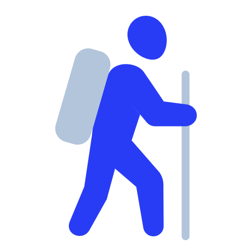 polish-blue simple icon: hiking, backpacking, outdoor, adventure, nature