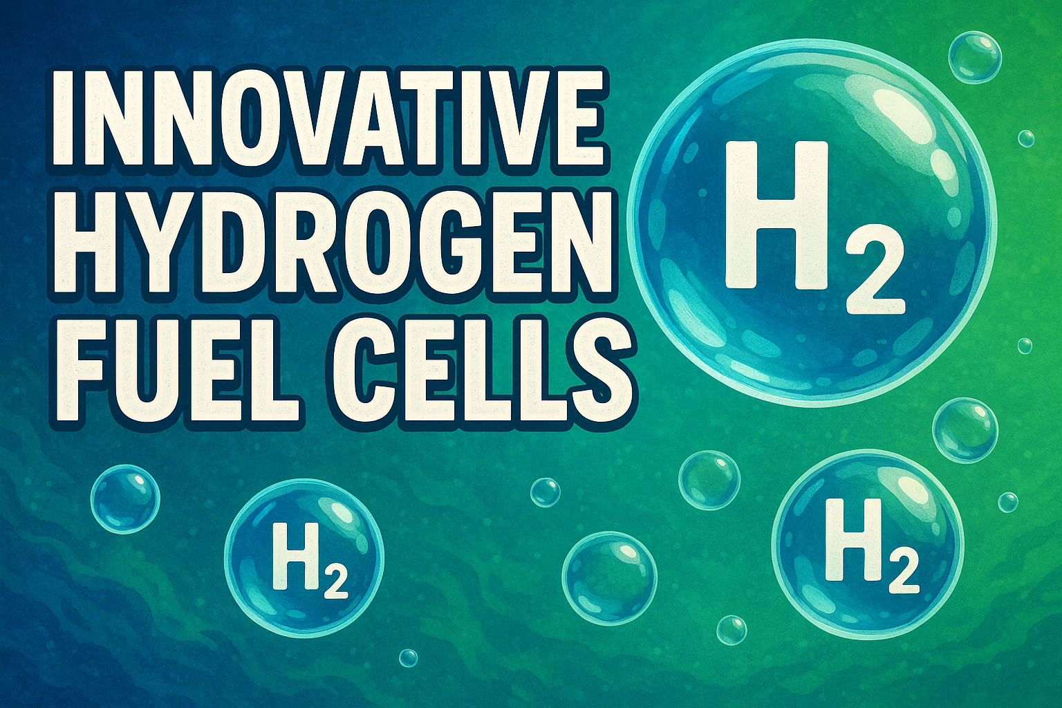 Colorful illustrative graphic showcasing hydrogen fuel cells with bubbles and vibrant background, ideal for educational content or sustainability campaigns.