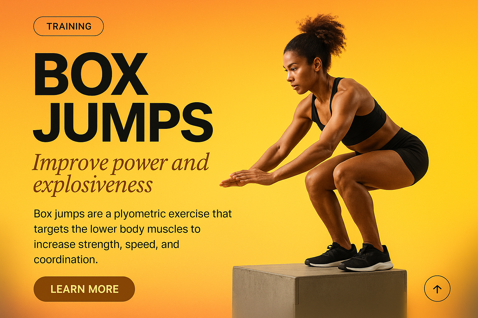 A visually striking landing page design featuring a box jumps exercise. Includes bold typography and vibrant gradient background, emphasizing training and fitness.