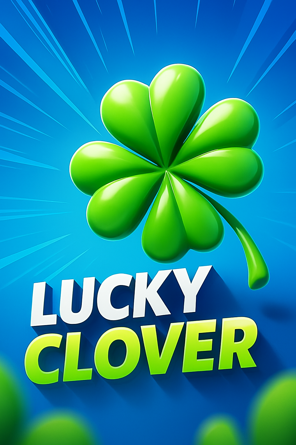 /Collection: /by davooda/Type: PNG/An eye-catching 3D illustration of a vibrant green four-leaf clover set against a smooth gradient blue background, featuring dynamic rays emanating from the center and bold, engaging typography.