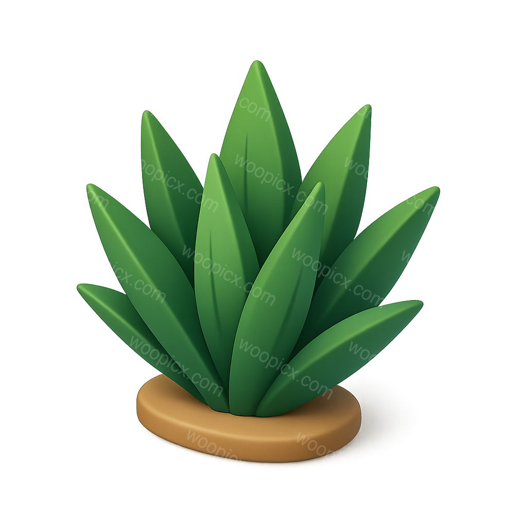 /Premium/Collection: /by davooda/Type: PNG/This image features a stylized 3D representation of an agave plant, showcasing vibrant green leaves arranged in a dynamic layout. The icon has a soft, rounded base and a transparent background, giving it a modern, volumetric feel.