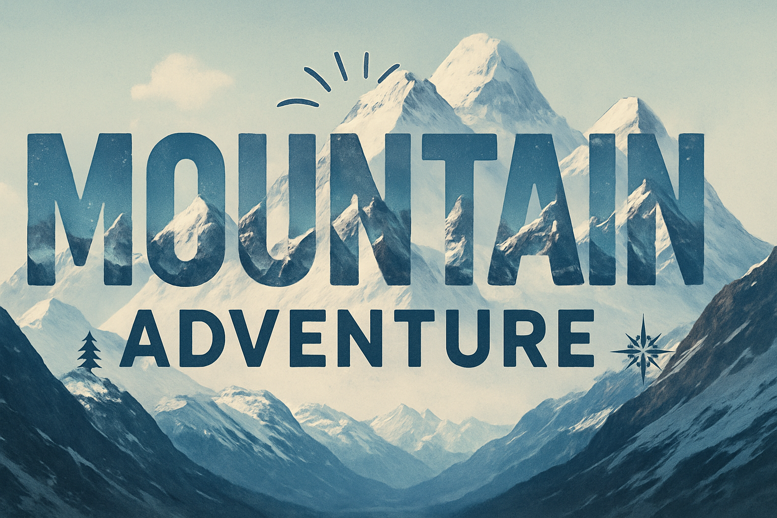 A visually appealing graphic showcasing majestic mountains with bold typography, ideal for promoting outdoor adventures and travel experiences.