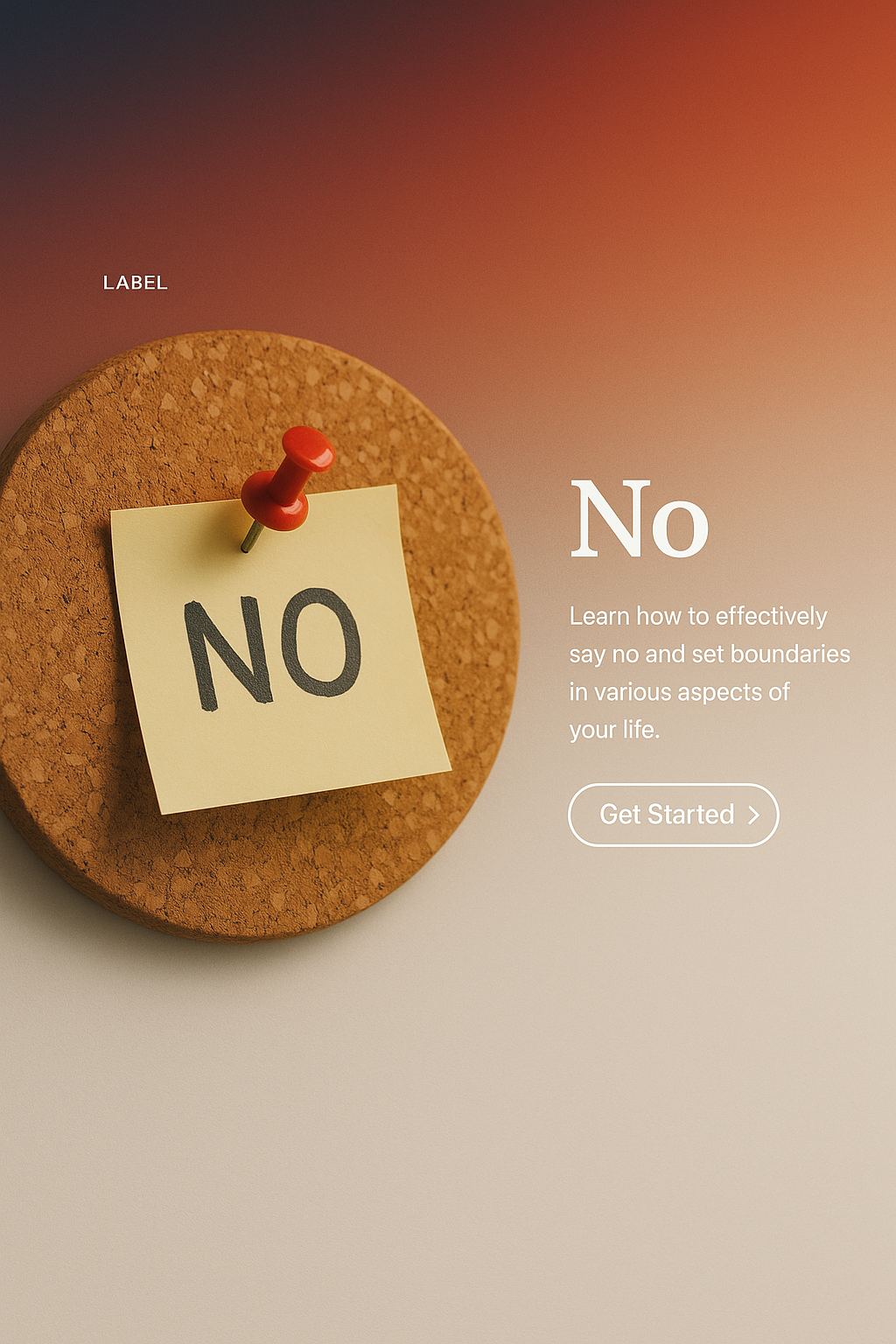 /Collection: /by davooda/Type: PNG/A visually appealing web design concept featuring a corkboard with a note saying 'No'. Accompanied by a brief text block and an action button, all on a gradient background.