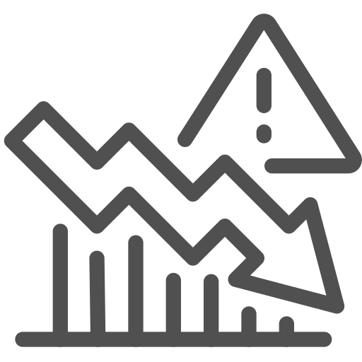 outline simple icon: business risk, crisis, decreasing graph, financial loss, market downturn