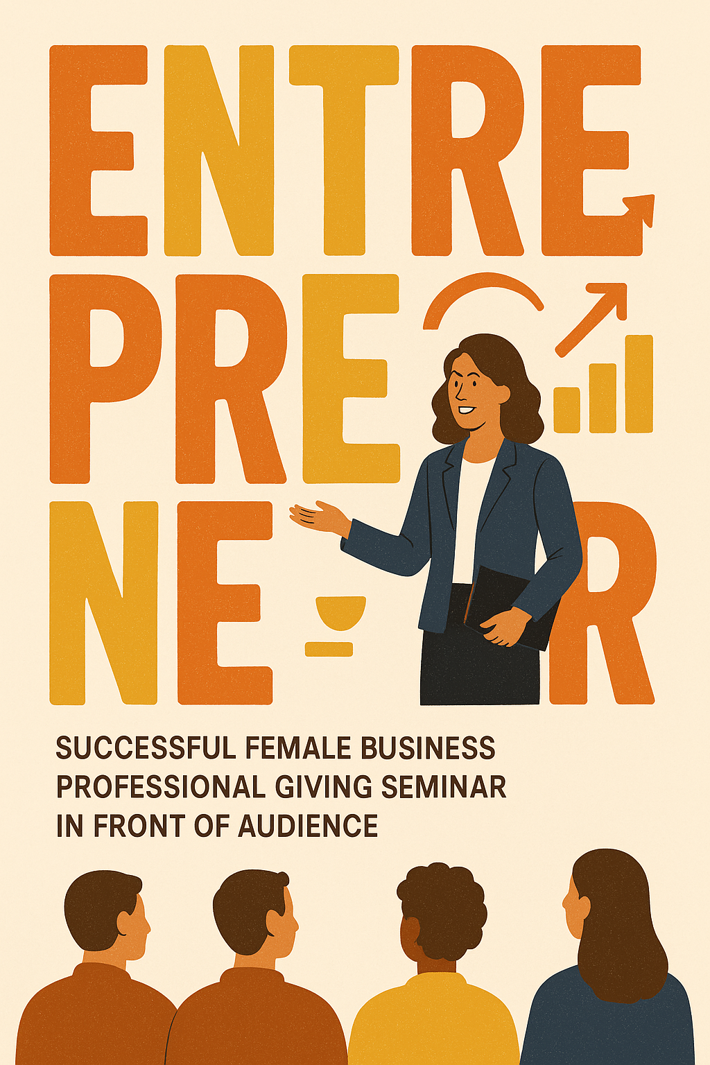 Illustrative Graphic of a Female Entrepreneur Leading a Seminar