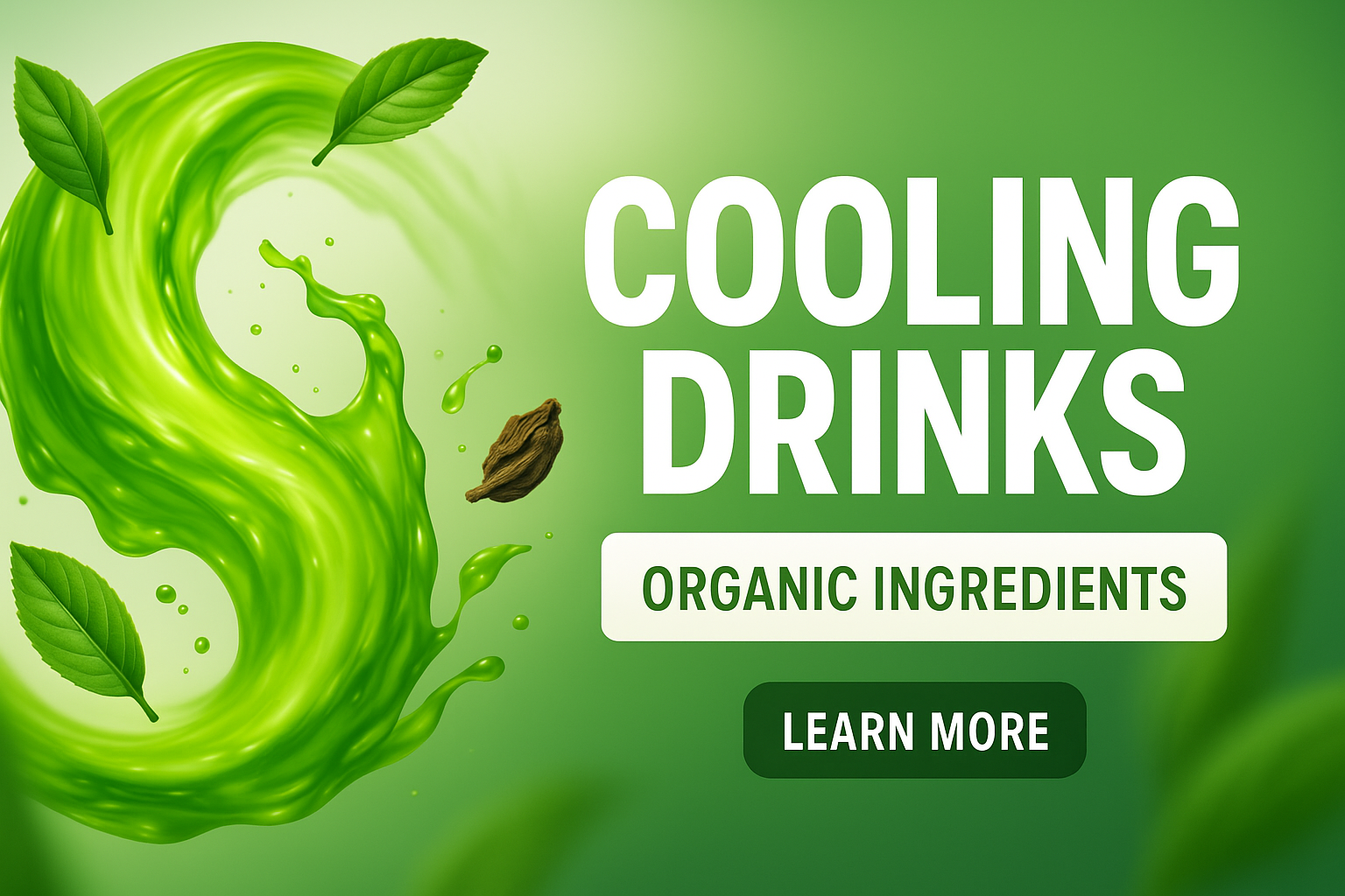 Promotional Graphic for Cooling Drinks Featuring Organic Ingredients
