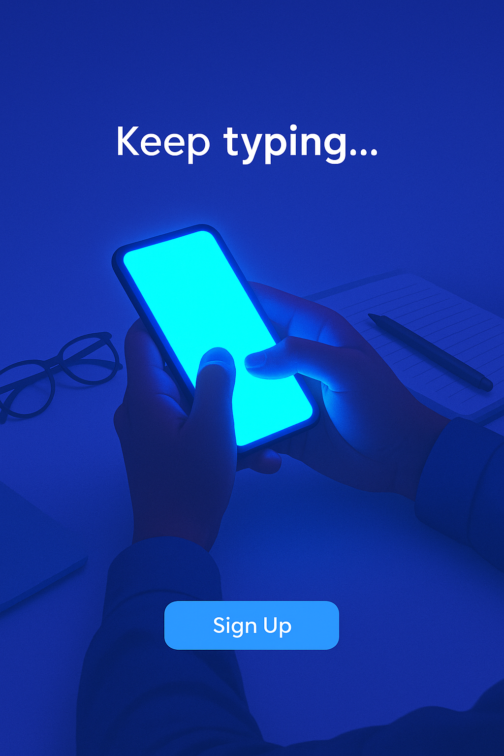 /Collection: /by davooda/Type: PNG/A person holding a glowing phone while typing, surrounded by a blue-themed environment. The glow from the phone creates an atmospheric effect, illuminating the space with cool shades.