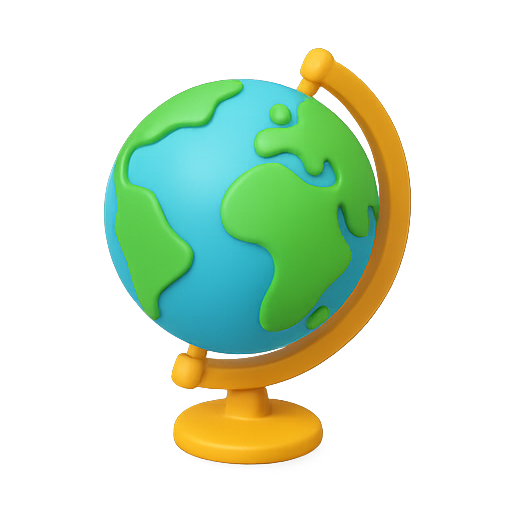 A vibrant 3D illustration of a globe featuring green landmasses and blue oceans, ideal for educational and travel-related content.