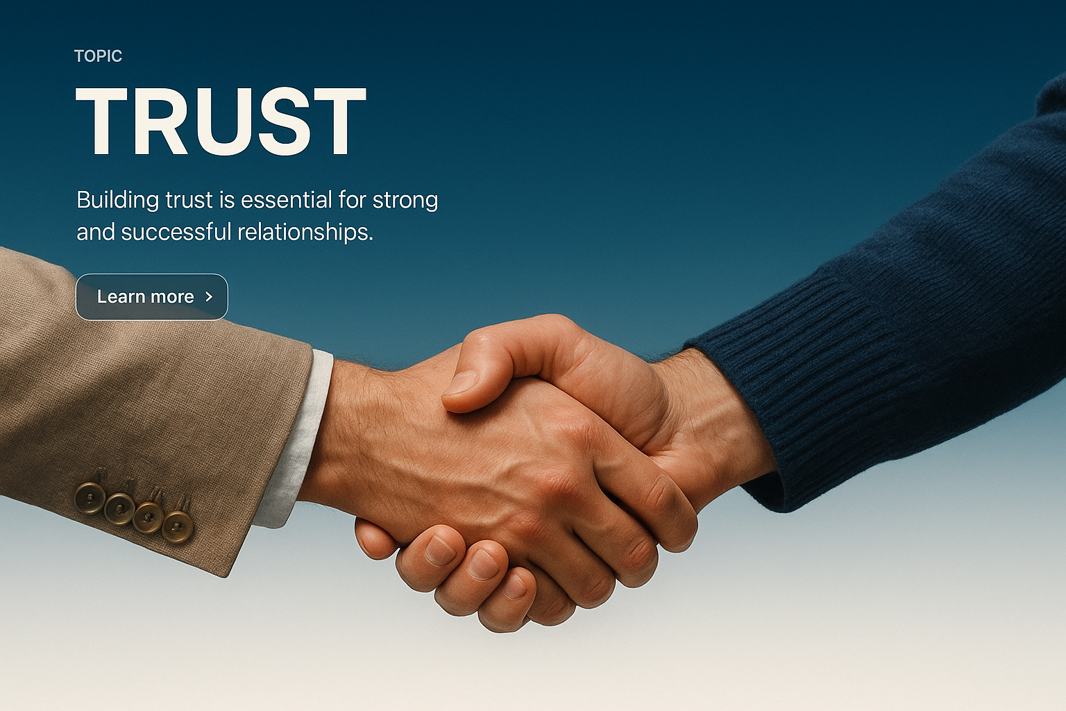 /Collection: /by davooda/Type: PNG/A realistic illustration showcasing a handshake between two individuals, symbolizing trust and strong relationships. The background features a gradient transitioning from dark blue to white.