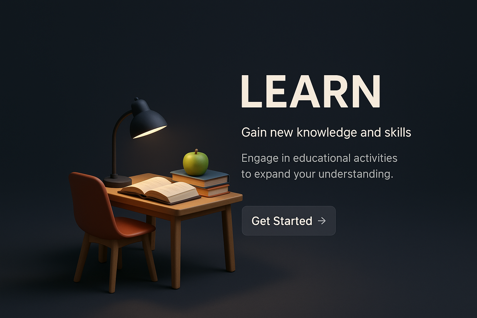 /Collection: /by davooda/Type: PNG/A realistic 3D scene depicting a study desk with an apple, books, and a lamp, set against a dark gradient background. The scene emphasizes learning and knowledge acquisition.