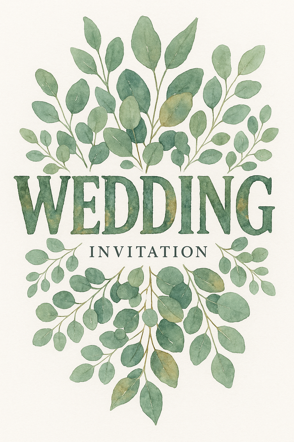 Charming wedding invitation featuring a watercolor leaf design, perfect for couples seeking a nature-inspired theme. Ideal for print or digital use.