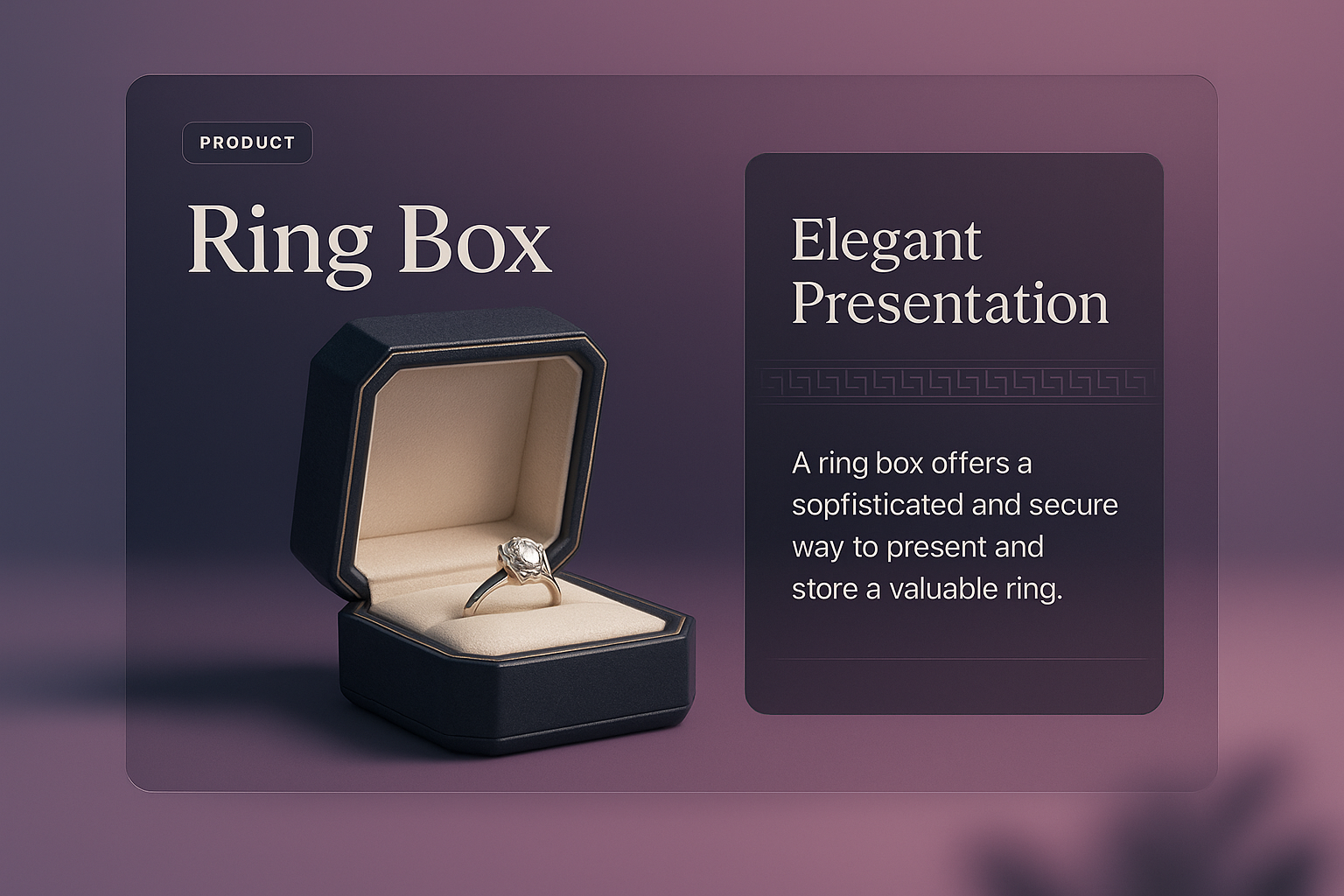 A sophisticated ring box showcased on a smooth gradient background, featuring elegant text. The design emphasizes luxury and secure storage for valuable rings.