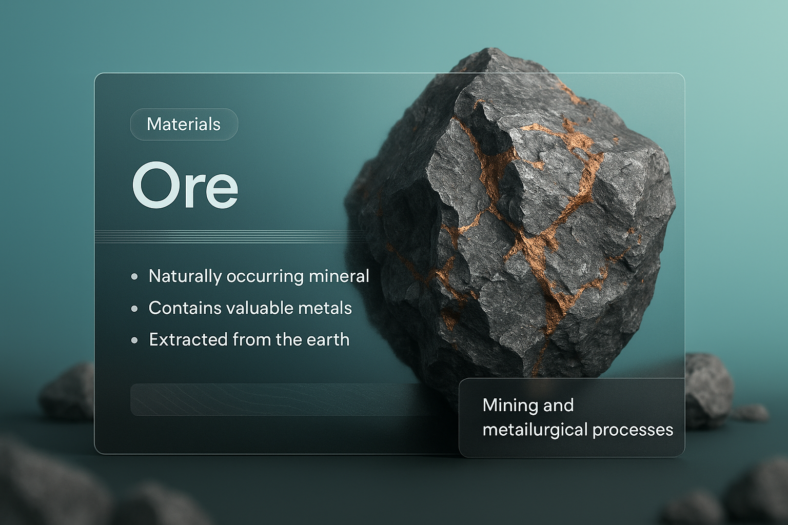 /Collection: /by davooda/Type: PNG/A visually engaging 3D illustration of a mineral ore, featuring informative text blocks integrated into the design. The background offers a smooth gradient, enhancing the overall aesthetic.